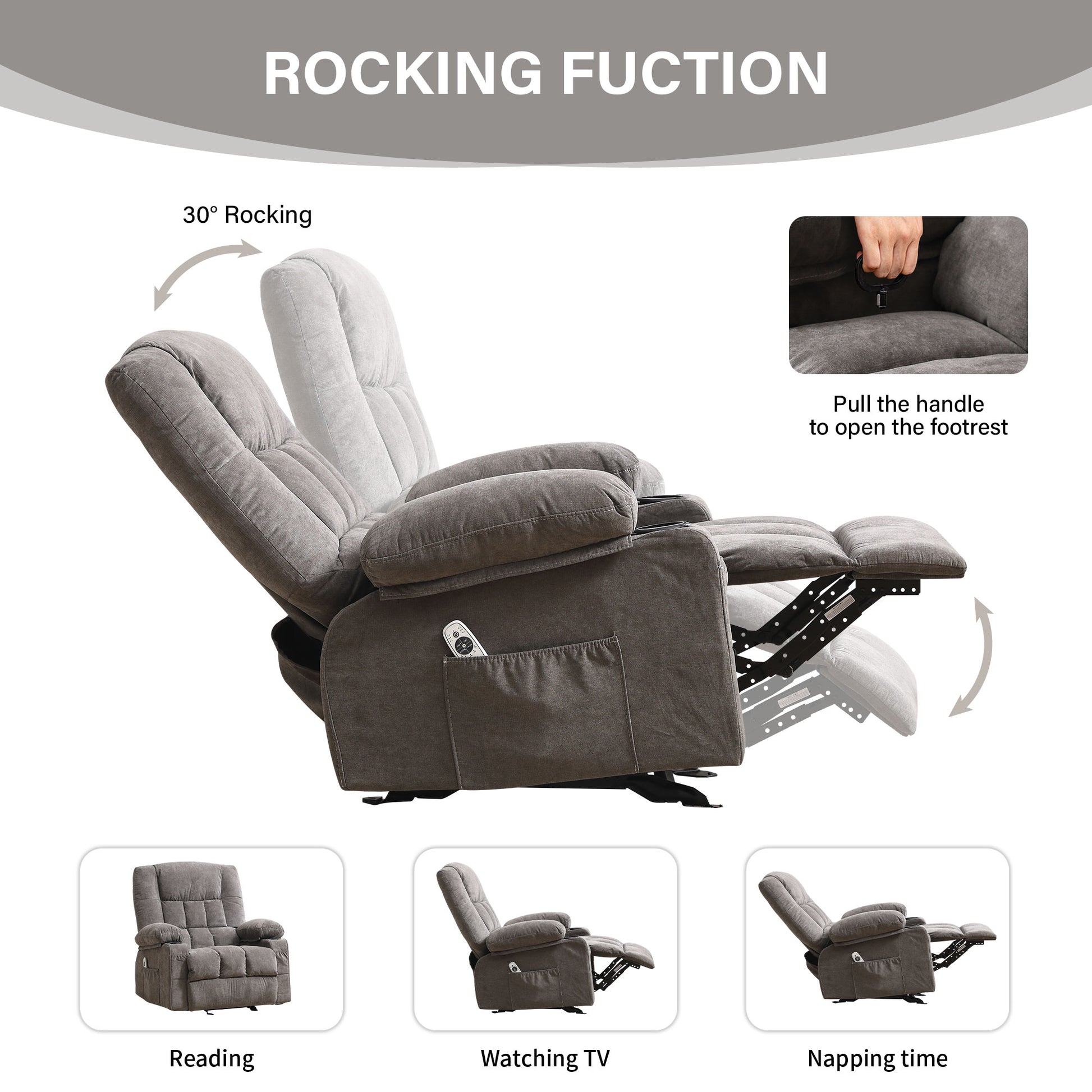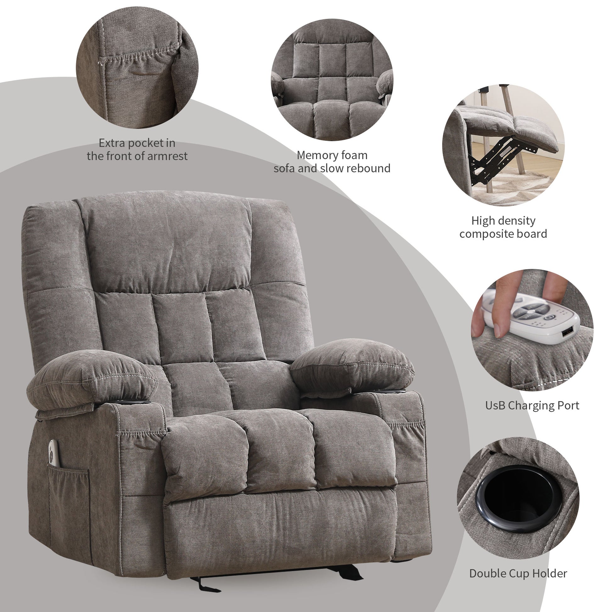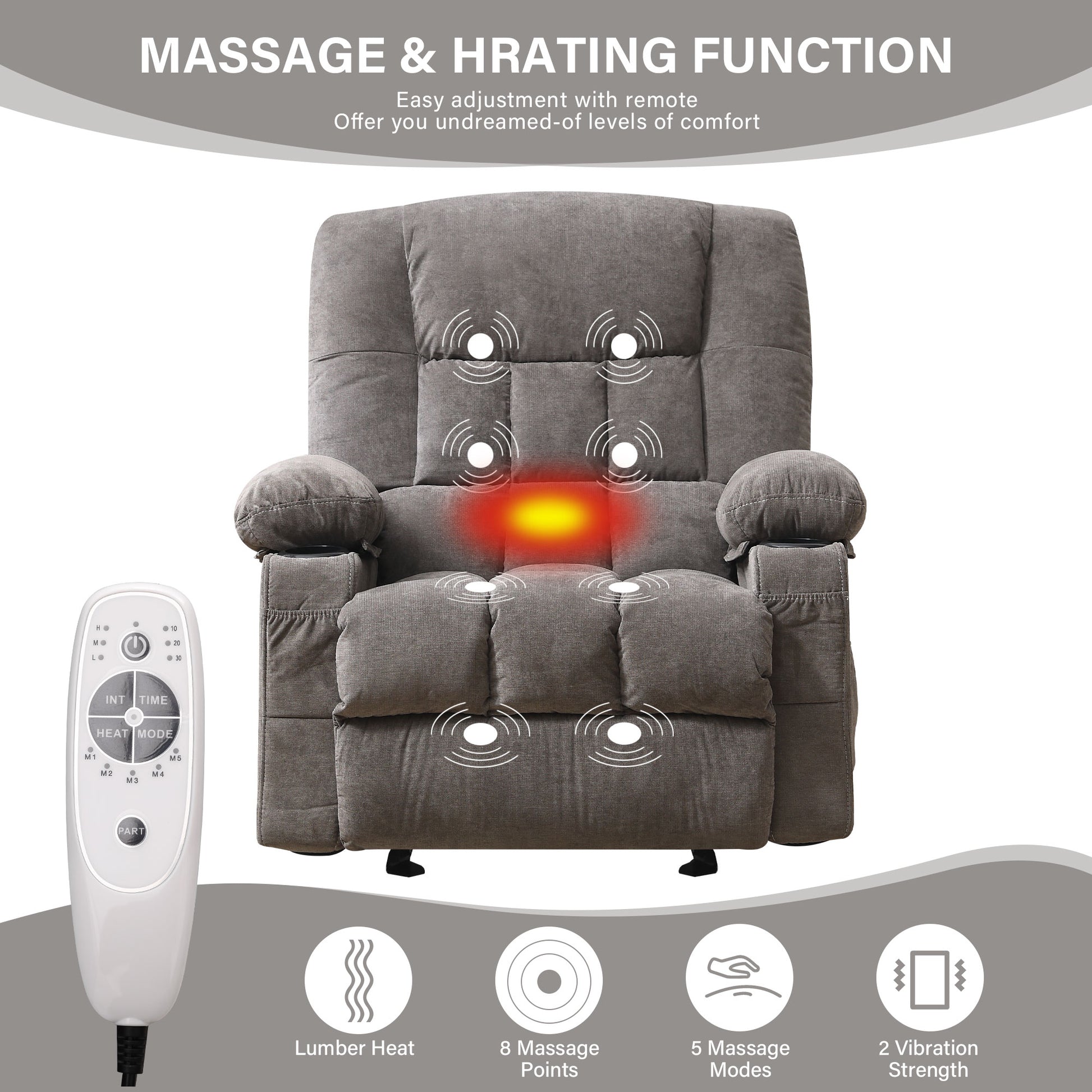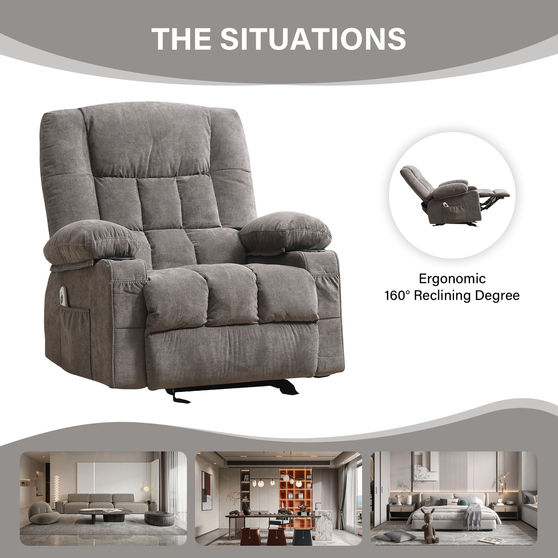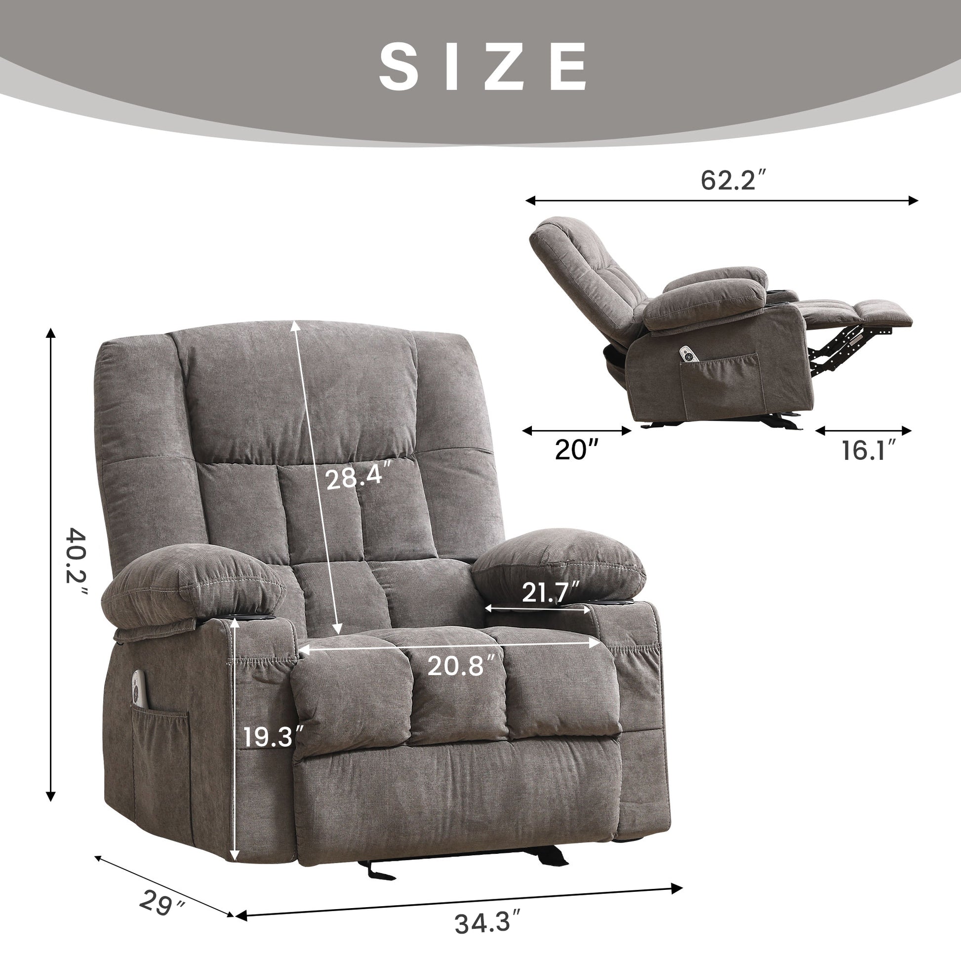 Manual Recliner Chair with Heat Therapy and Massage Function, Heavy Duty Reclining Mechanism Massage Chair, Elderly Single Rocker Sofa with Cup Holders for Bedroom Home Theater,1149GM